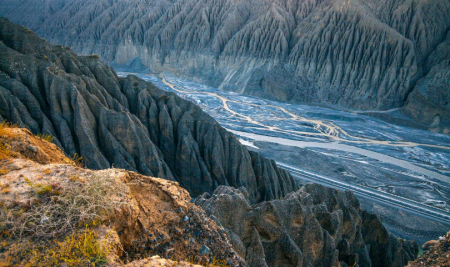 14:30-17:00抵達(dá)【獨(dú)山子大峽谷】進(jìn)行游覽,冬天的獨(dú)山子大峽谷更像是壹幅巨型水墨畫(huà)。從空中看,下沈于地平線之下,宛若壹條深水走廊。與我之前去過(guò)的在地上的峽谷不同,獨(dú)山子大峽谷從上向下看,是需要壹些勇氣的!在這里不僅可以欣賞到自然奇跡之不可思議,黑色的流水沖擊泥沙的痕跡被保留了下來(lái),峽谷兩側(cè)灰黑色陡峭崖壁上密布的樹(shù)狀溝壑和肌理,寬闊而深?yuàn)W,兩岸無(wú)數(shù)被雕刻的形狀,此番此景不由得讓人感嘆,沿河道向上望,貌似沒(méi)有盡頭,那是通往何方的呢。