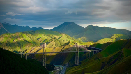 早接酒店乘車前往塞外明珠—神秘美麗的高山湖泊--【賽里木湖】(含門票+自駕區(qū)間車費用),途經素有伊犁第壹景之稱的奇溝飛橋果子溝,車覽【亞洲最大跨度的夸山斜拉橋】,(由于交通原因不能停車),乘車進入賽里木湖景區(qū)游覽觀光。